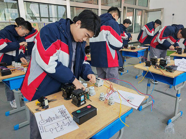 学生正在进行电工实训。李嘉摄