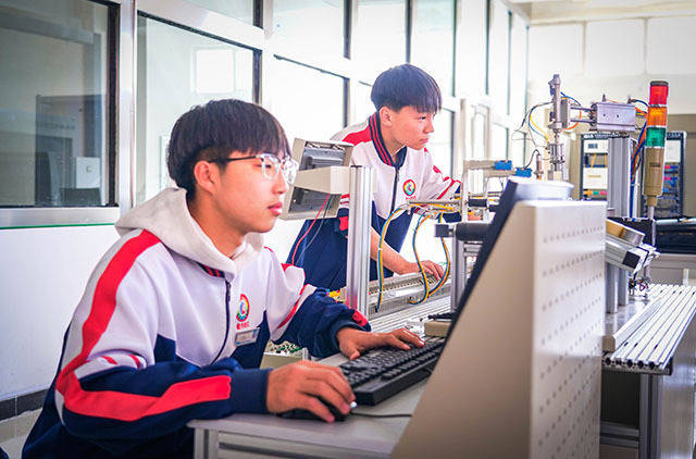 学生正在进行自动控制实训。李嘉摄